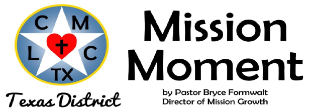 Pastor Bryce Formwalt is the Director of Mission Growth for LCMC Texas District and Program Director of Harvest Workers, an online ministry training program (learn more at www.harvestworkers.net). Residing in Georgetown, Pastor Bryce is available to coach congregations on mission. Please contact him with any questions or comments: 512-